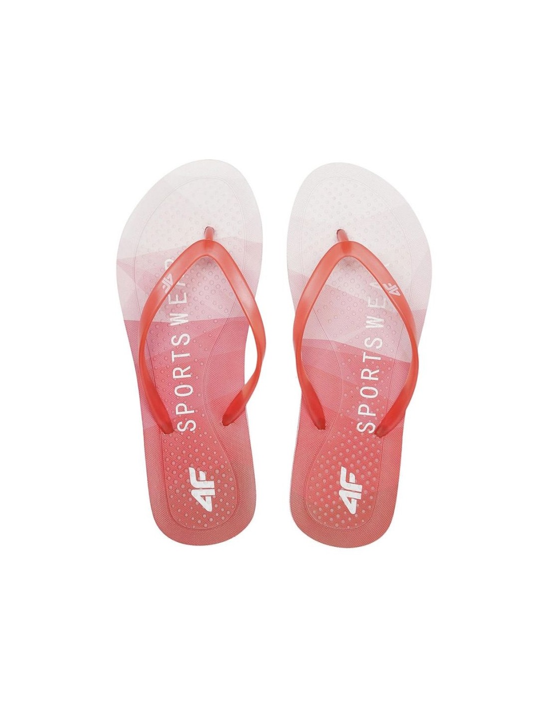 Καταλύματα:Γυναικείες σαγιονάρες 4F.Λαστιχένιοι ιμάντες.Μαλακή σόλα αφρού.Τα ένθετα στη σόλα εμποδίζουν τη μετατόπιση του ποδιού.Υλικός:βινύλιοΧρώμα:κόκκινος