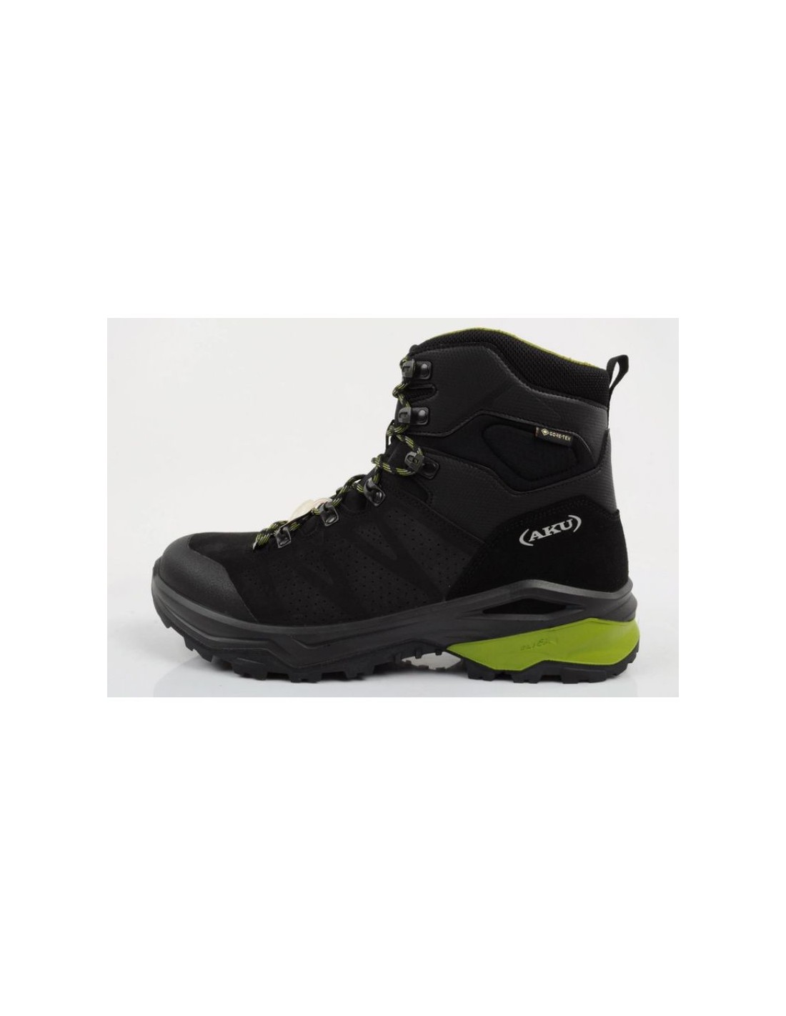 Properties: Product name : Aku Adapta men’s trekking sports shoes product code: 490388 Shoe type : Trekking Color : Black, Green Upper material : Textile material, natural leather ensuring durability and flexibility Interior : Textile materials, Custome Fit insert, ensuring high comfort of use. Sole : Vibram, Technologies : Gore-tex, Vibram, Elica, Air8000, Custome Fit Heel : Stabilizing, supporting correct foot posture Use: Perfect for everyday activities as well as mountain trails and rocky paths. Additional features: comfortable, durable, suitable for active men. Lacing: classic, speed lacing
