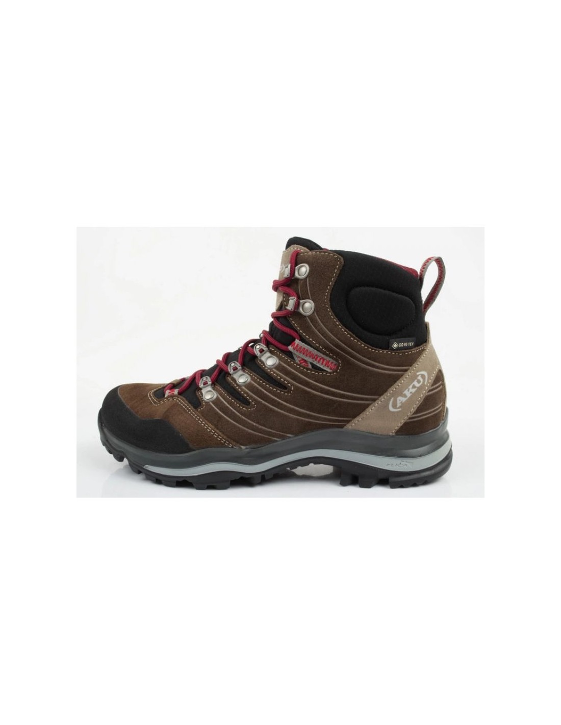 Properties: Product name : Aku Alterra trekking sports shoes product code: 403313 Shoe type : Trekking Color : Brown, black, burgundy Upper material : Natural leather, textile material, providing durability and flexibility Interior : Textile made of materials, ensuring high comfort of use. Sole : Vibram, Elica, light and durable. Technologies : Gore-tex, Vibram, Elica Heel : Stabilizing, supporting correct foot posture Use: Perfect for everyday activities as well as mountain trails and rocky paths. Additional features: comfortable, durable, suitable for active women.