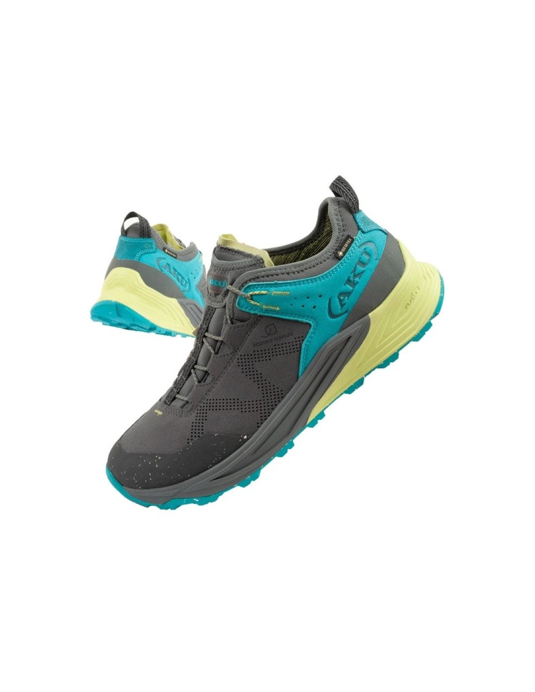 Properties: Product name : Aku Omina men’s trekking sports shoes product code: 771241 Shoe type : Trekking Color : Gray, turquoise, green Upper material : Textile, providing durability and flexibility Interior : Textile made of materials, Ortholite insole, ensuring high comfort of use. Sole : Tenuta, Elica, for all surfaces Technologies : Gore-tex, Vibram, Elica, Heel : Stabilizing, supporting correct foot posture Application: Perfect for everyday outdoor activities, cycling Additional features: comfortable, durable, suitable for active men.