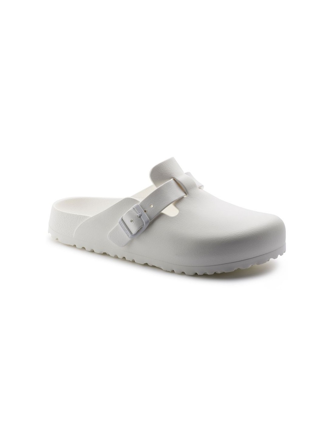 Birkenstock Boston Eva W σαγιονάρες Χαρακτηριστικά: Τα BIRKENSTOCK Boston είναι ένα πραγματικό κλασικό μοντέλο που μπορεί να φορεθεί όλο το χρόνο. Χάρη στον εκλεπτυσμένο σχεδιασμό του και τη δυνατότητα εξατομικευμένης προσαρμογής, το μοντέλο Boston έχει εδώ και καιρό αποκτήσει θρυλική υπόσταση. Το μοντέλο, που έχει ως πρότυπο ένα σανδάλι από φελλό, είναι κατασκευασμένο από ιδιαίτερα ελαφρύ και πολύ εύκαμπτο πλαστικό EVA. Το υψηλής ποιότητας πλαστικό EVA είναι άοσμο και ελεγμένο για πιθανές μολύνσεις και συνδυάζει πολλές ιδιότητες: είναι πολύ ελαφρύ, εύκαμπτο, αντικραδασμικό, ανθεκτικό στο νερό και φιλικό προς το δέρμα. Ανατομικά διαμορφωμένη εσωτερική σόλα BIRKENSTOCK από αφρό EVA Άνω υλικό, εσωτερική σόλα, σόλα: EVA από ένα εκμαγείο Λεπτομέρειες: αδιάβροχο, πλένεται, πολύ ελαφρύ “Made in Germany” Narrow fit.
