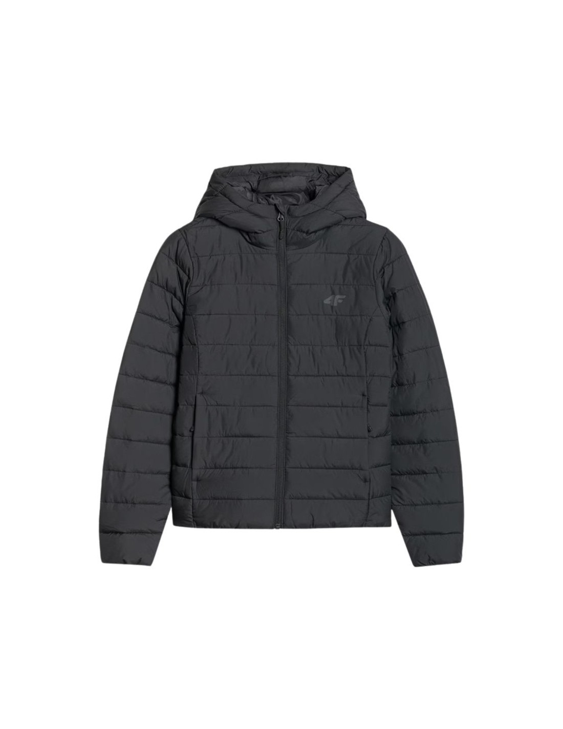 Down jacket 4F W 4FWAW25TDJAF580 Properties: Women’s down jacket 4F The 4F women’s jacket with low volume and light filling will be a faithful companion during everyday and sports activities on warmer days in the transition period. Main material: 100% polyester Lining: 100% polyester · Filling: 100% polyester · Slim fit – highlights the figure, providing a modern look and comfort · Standard hip length – a universal cut suitable for everyday wear. Classic horizontal quilting – increases the durability of the jacket and prevents the insulation from shifting. Perfect for warmer, cloudy transitional days – optimal insulation without overheating Hydrophobic coating of the outer material – limits moisture absorption and protects against light rain Integrated, non-adjustable hood – ready to use at any time, no need to adjust Low stand-up collar – additional neck protection against cold and wind Elasticated cuffs – prevent wind and retain warmth 2 side pockets with zippers – safe storage of small items 2 internal open pockets – easy access to the most necessary items One-way main zipper with a wind flap – an additional barrier against cold gusts Bottom finished with elastic rubber – better fit and thermal protection· Rip stop material – increased resistance to abrasion and mechanical damage· Recycled synthetic filling – effective thermal insulation even in humid conditions, environmentally friendly