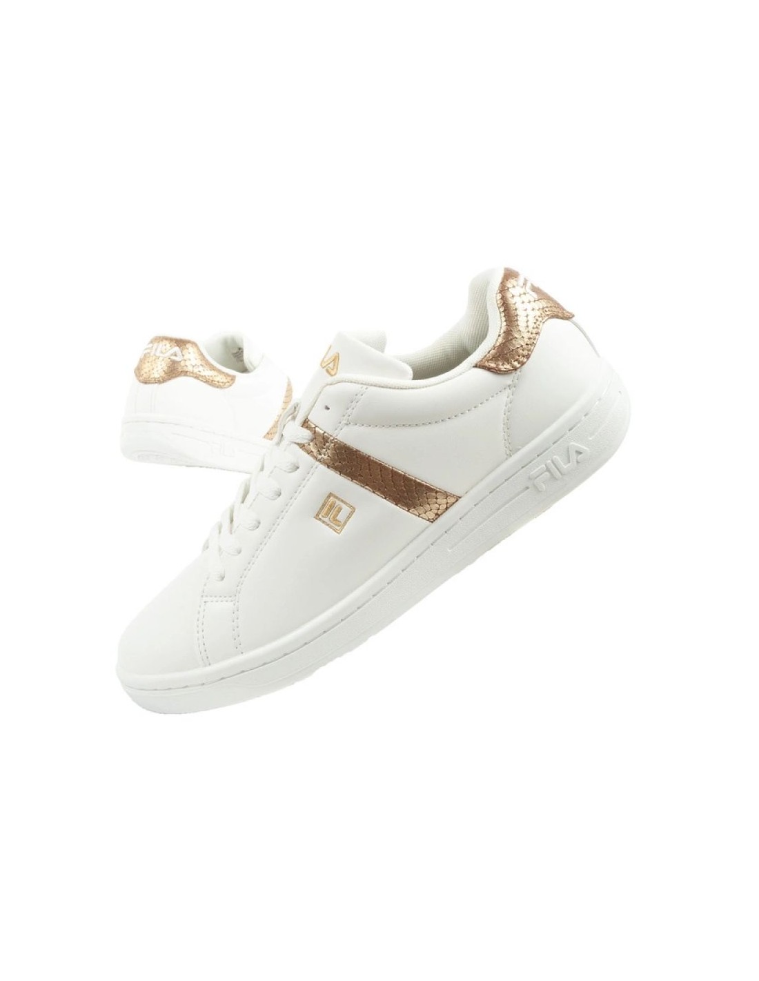 Properties: Product name : Fila Crosscourt 2 sports sneakers, product code FFW025713069 Brand : Fila Shoe type : Sneakers Color : White, gold Upper material : Eco-leather Interior : Textile, ensuring high comfort of use Sole : Thick, cushioned Comfort : Provides freedom of movement Application: for every everyday styling Additional features: Comfortable, durable