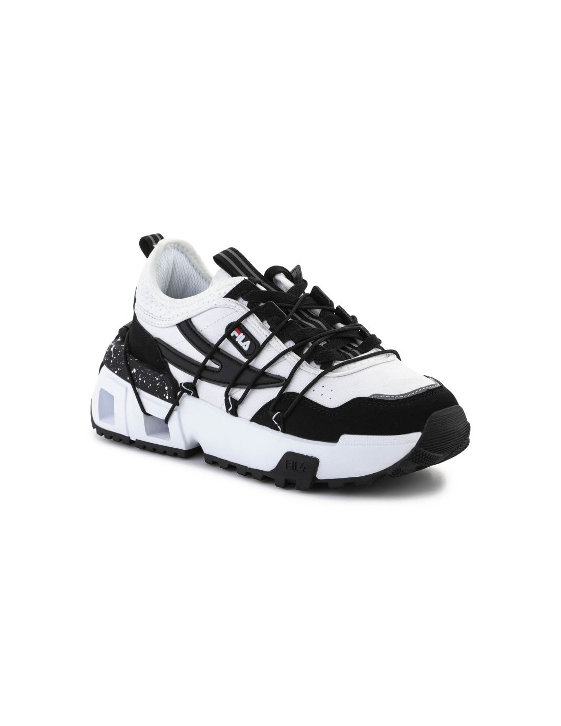 Ιδιότητες: Γυναικεία αθλητικά παπούτσια από τη συλλογή της Fila. Τα παπούτσια διαθέτουν δύο συστήματα κορδονιών – το κανονικό και το γρήγορο. Παχιά σόλα από καουτσούκ. Υλικό: Αθλητικά παπούτσια, που φέρουν το όνομα του παπουτσιού: συνθετικό, ύφασμα Χρώμα: Συνθετικό ύφασμα: Λευκό και μαύρο
