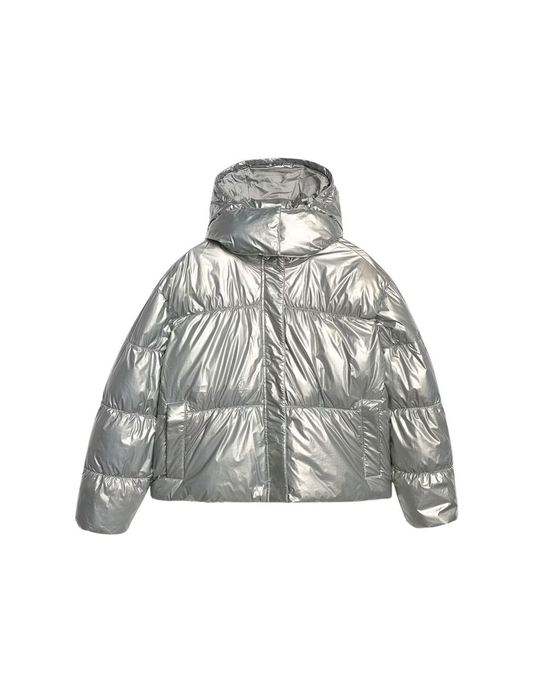 Women’s down jacket 4F F0716 cool light gray 4FWAW25TDJAF0716 27S The 4F women’s jacket will wrap you in warmth and provide comfort in autumn and winter. The outer layer is made of a durable material with a slightly rustling texture, which is characterized by increased abrasion resistance and good resistance to contact with moisture. Technical data: Main material: 100% polyamide Lining: 100% polyester Filling: 100% polyester · Hydrophobic outer coating – limits moisture absorption and protects against light rain Synthetic down filling – retains warmth even in humid conditions Oversized, loose cut – ensures freedom of movement and a fashionable look Hip-length – comfortable for everyday use and winter walks Smooth polyester lining – makes it easier to put on and improves wearing comfort · Detachable, adjustable hood – you can adjust it to your needs and weather conditions High collar – additional neck protection against wind and cold Elastic cuffs – fit snugly around your wrists and retain warmth 2 side pockets – perfect for hands or essentials · Internal pocket without closure – additional space for a phone or documents · Zipper with wind flap – blocks the access of cold air to the inside of the jacket · Adjustment of the jacket bottom – a tunnel drawstring allows you to adjust the circumference to your figure