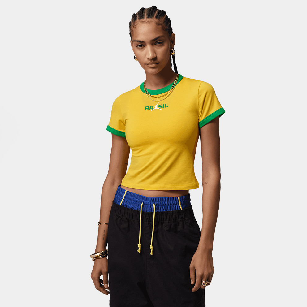 Λεπτομέρειες • Jordan Retro Brazil crewneck T‑shirt με κλασικά χρώματα Varsity Maize & Lucky Green • Ελαστικό modal‑cotton‑spandex ύφασμα για απαλή, εφαρμοστή αίσθηση • Retro graphic εμπνευσμένο από την εθνική ταυτότητα της Βραζιλίας • Κλασική crew λαιμόκοψη Χρώμα: Κίτρινο Brand: Jordan Size & Fit Εφαρμογή: Στενή Σύνθεση & Φροντίδα Σύνθεση: 48% Modal, 46% Cotton, 6% Spandex Φροντίδα: Πλύσιμο στο πλυντήριο