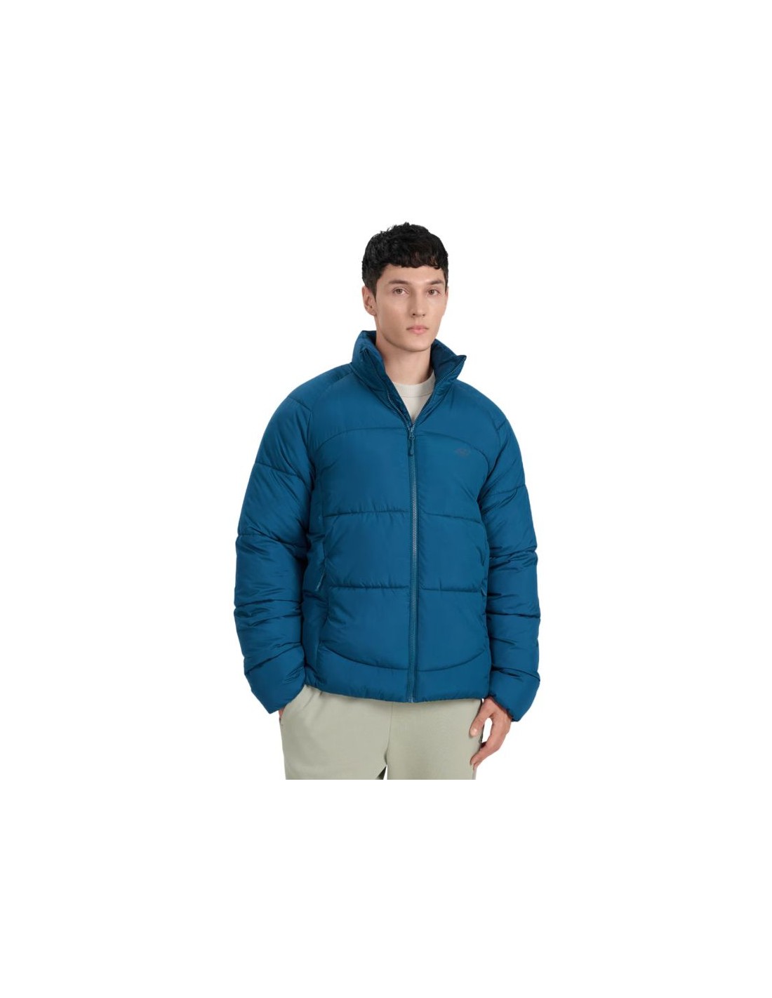 Men’s down jacket 4F M0707 dark navy blue 4FRAW25TDJAM0707 30S Men’s 4F jacket provides optimal thermal comfort and protection. Technical data: Main material: 100% polyester Lining: 100% polyester Filling: synthetic down, 100% polyester Regular cut – comfortable fit to the body without feeling embarrassed Standard length to the hips – universal cut for everyday use Classic horizontal quilting – aesthetic appearance and even distribution of insulation Smooth polyester lining – comfort of wearing and ease of putting on Designed for colder days – effective protection against cold Hydrophobic outer coating – limits moisture absorption and increases protection against rain High collar – additional neck protection against the wind 2 side zip pockets – safe storage of the most necessary things Inner zip pocket – practical space for documents or phone One-way zipper with a wind flap – limits the penetration of cold air Bottom with elastic band – better fit and protection against wind Rip stop material – durable, Tear-resistant fabric with reinforced structure · Recycled synthetic filling – effective thermal insulation even in humid conditions