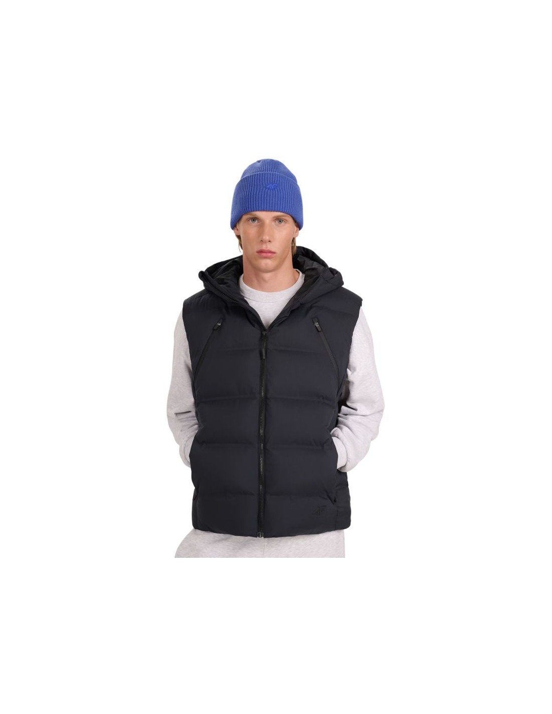 4F M226 Men’s Vest Deep Black 4FWAW25TVJAM226 20S The 4F men’s vest is perfect as outerwear on cooler days during the transitional period. Moderate volume. Technical data: Main material: 100% polyester Lining: 100% polyester Filling: 100% polyester (synthetic down) Regular fit – comfortable fit to the body ensuring freedom of movement Hip length – standard cut ensuring a universal fit Horizontal quilting – classic look and even filling distribution Smooth polyester lining – comfort of wearing and easy to put on Designed for colder days – optimal protection against cold Hydrophobic outer coating – limits moisture absorption in difficult conditions Integrated hood with regulation – allows you to adjust head protection to your needs High collar – additional protection against cold and wind 2 side pockets with zippers – safe storage of small items 2 chest pockets with zippers – additional space for necessary accessories Inner pocket with zipper – discreet and safe storage One-way main zipper with a pleat – effective wind barrier Non-adjustable bottom – straight cut for comfort Synthetic down filling – durable thermal insulation even in wet conditions