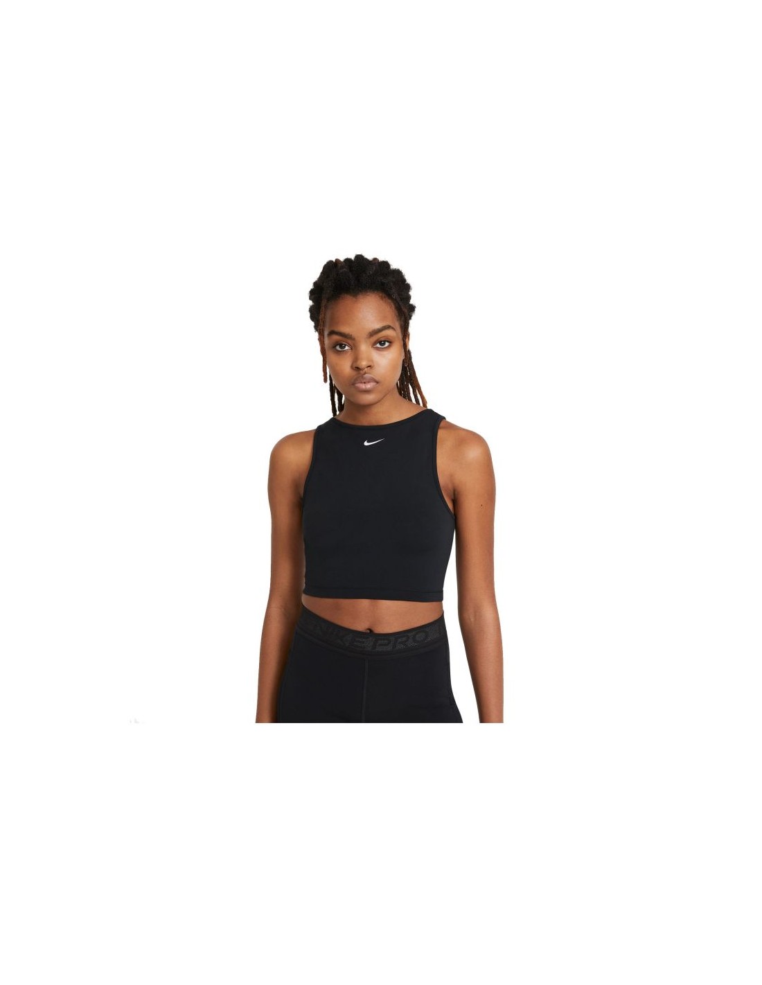 Nike WMNS Pro Crop Top Properties: women’s training crop top mesh insert on the back ensures breathability made in DRI-FIT technology / releasing sweat outside built-in half bra composition: 78% polyester / 22% elastane color: black The Nike Pro Tank Top wicks sweat to help keep you dry and cool during your most intense workouts and competitions. The stretchy design with mesh panels is made from at least 50% recycled polyester, providing comfort and freedom of movement throughout your workout. A mesh waistband enhances breathability in high-heat areas, helping you stay cool as your workout heats up. A built-in half bra provides support and a soft feel. The high neckline provides coverage while bending and stretching, and the cropped length prevents bunching at the bottom of the tank.