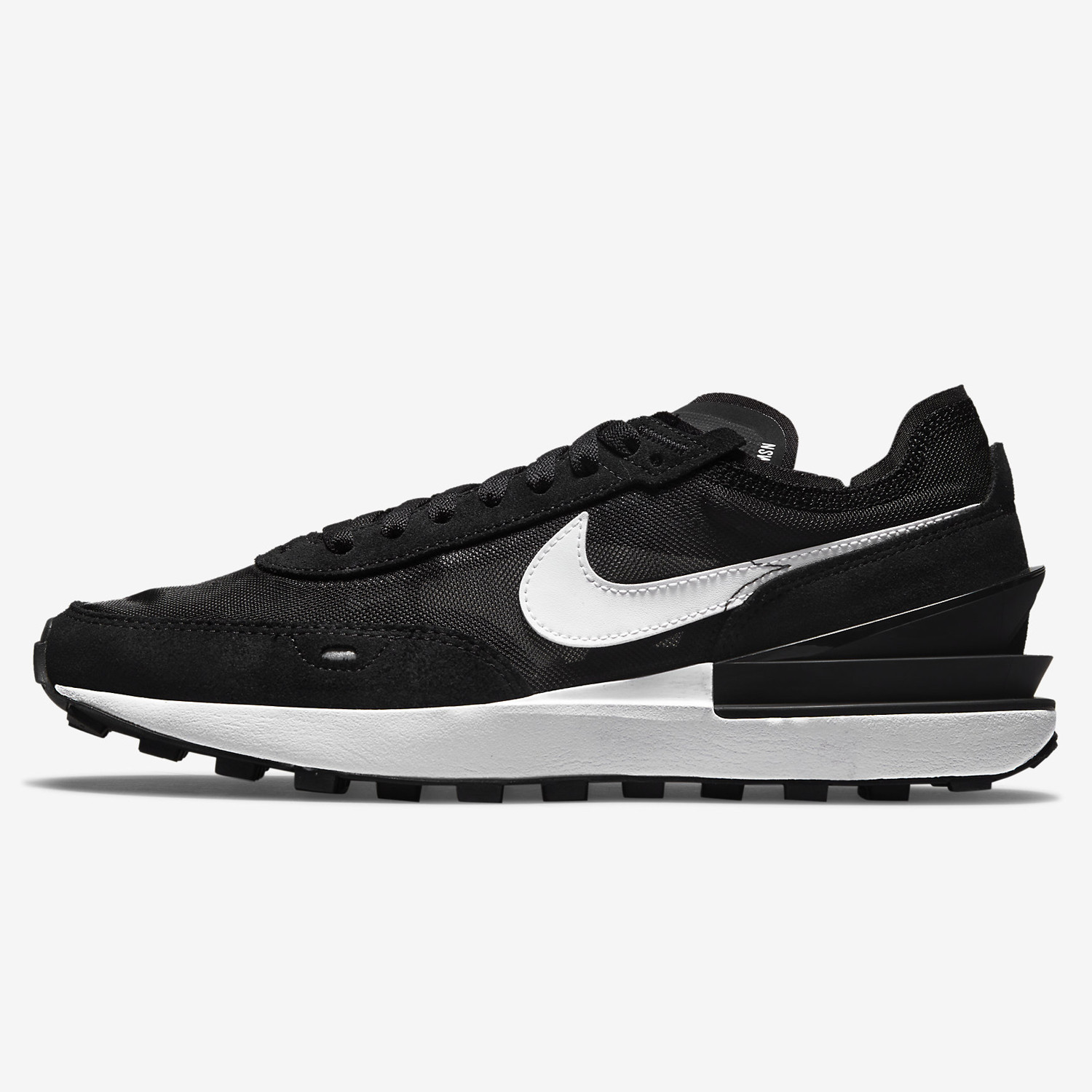 Το Nike Waffle One ανανεώνει την εμφάνιση της οικογένειας των sneaker Waffle, εξισορροπώντας όλα τα στοιχεία που αγαπάς στα κλασικά μοντέλα για τρέξιμο της Nike με μοντέρνες καινοτομίες. Το νέο κλιπ φτέρνας από TPU χαρίζει πρόσθετη ενέργεια, ενώ ο συνδυασμός από διάφανο διχτυωτό υλικό (που αναδεικνύει τις κάλτσες σου) και ρετρό σουέντ προσφέρει υφή και βάθος. Η ανανεωμένη εξωτερική σόλα Waffle εξασφαλίζει ένα επίπεδο στήριξης και πρόσφυσης που θα πρέπει να νιώσεις για να το πιστέψεις. Πληροφορίες • Επάνω μέρος από συνδυασμό υλικών που περιλαμβάνει διάφανο διχτυωτό υλικό και απαλά σουέντ • Στενή εφαρμογή – Προτίμησε μισό νούμερο μεγαλύτερο • Ενδιάμεση σόλα σε δύο στρώσεις που διατηρεί το κλασικό σχήμα της σφήνας από τη σειρά Waffle για μαλακό βηματισμό και αντικραδασμική προστασία. • Νέο κλιπ φτέρνας από TPU για δυναμική εμφάνιση που προσφέρει παράλληλα στήριξη και ενέργεια • Aνανεωμένη εμβληματική εξωτερική σόλα από καουτσούκ με μοτίβο waffle, με νέες ειδικά διαμορφωμένες προεξοχές για μεγαλύτερη στήριξη, πρόσφυση και ανθεκτικότητα • Χαμηλό κολάρο με απαλά άκρα για κομψή εμφάνιση και άνετη αίσθηση • Σόλα από καουτσούκ Extra Λεπτομέρειες • Δέσιμο με κορδόνια • Λογότυπο Nike • Χρώμα: Μαύρο
