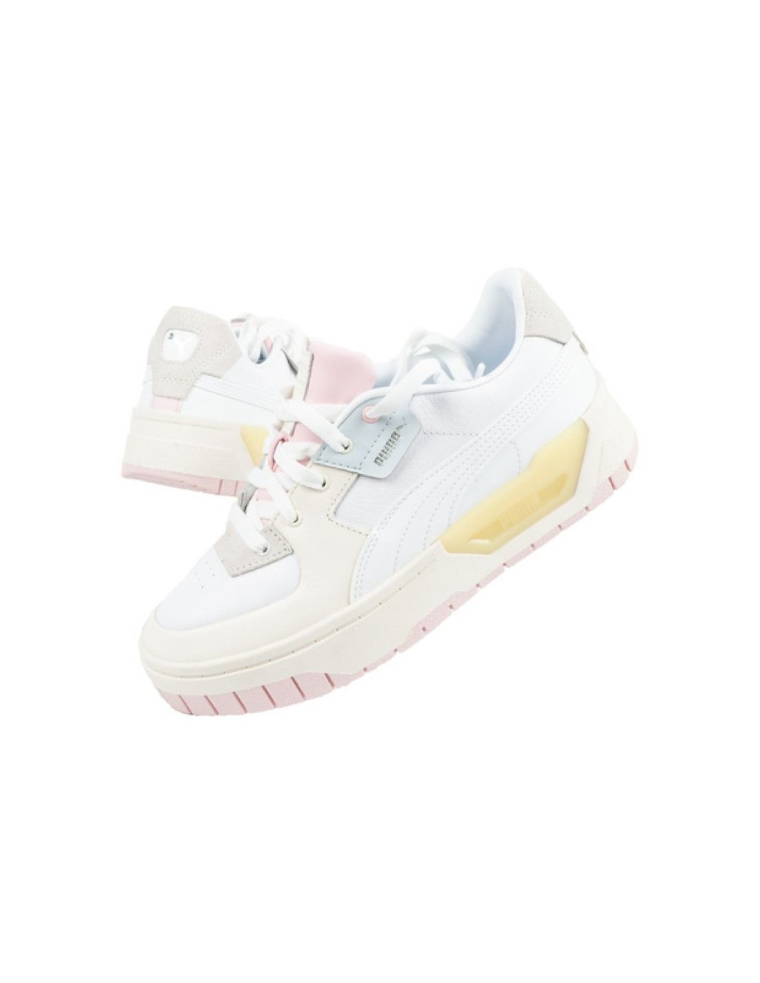 Puma Cali Dream W 383112 01 αθλητικά παπούτσιαΙδιότητες:Το παρουσιαζόμενο μοντέλο είναι κατασκευασμένο από συνδυασμό φυσικού και οικολογικού δέρματος.Το εσωτερικό και το ένθετο είναι κατασκευασμένα από οικολογικό δέρμα.Η χοντρή, υψηλής πρόσφυσης σόλα με πλατφόρμα 3,5 εκατοστών το καθιστά ένα τολμηρό, αποφασιστικό παπούτσι που μπορείτε να πατήσετε με αυτοπεποίθηση.Η λάμψη των μεταλλικών σημάτων της μάρκας προσθέτει στυλ και κομψότητα.Τα παπούτσια είναι ιδανικά για καθημερινή χρήση.ΣυνθετικόΣυνθετικό χρώμα: λευκό