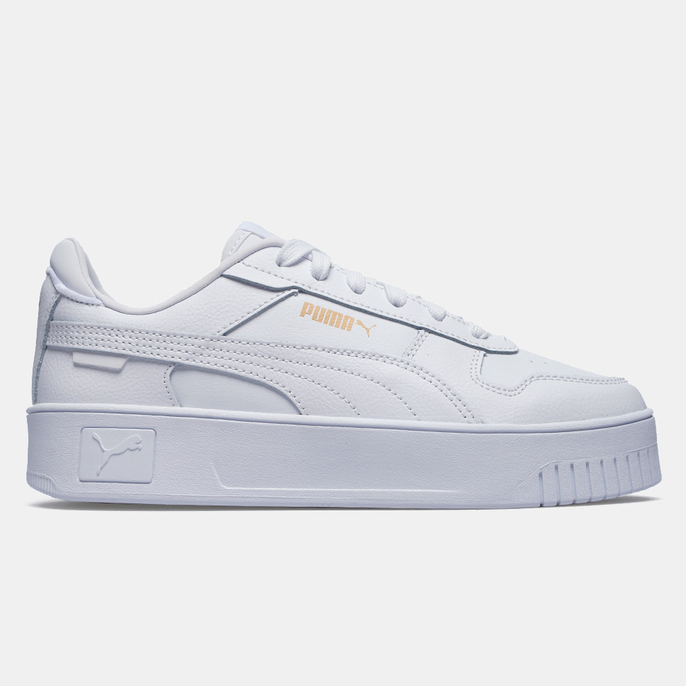 Ανάδειξε το καθημερινό σου στυλ και στο streetwear σου μ’ αυτά τα Carina από την Puma. Διαθέτουν ελαφρώς υπερυψωμένη πλατφόρμα, εσωτερικό πάτο σχεδιασμένο για να παρέχει μαλακή αντικραδασμική προστασία χάρη στην πολύ παχιά φτέρνα του καθώς και Puma formstrip στη μεσαία και πλευρική πλευρά. Πληροφορίες • Δερμάτινο επάνω μέρος • Ενδιάμεση σόλα από καουτσούκ • Εξωτερική σόλα από καουτσούκ • Softfoam+: εσωτερικός πάτος σχεδιασμένος για να παρέχει μαλακή αντικραδασμική προστασία χάρη στην πολύ παχιά φτέρνα του • Puma Formstrip στη μεσαία και πλευρική πλευρά • Ανακυκλωμένο περιεχόμενο: Το πάνω μέρος αυτού του παπουτσιού είναι κατασκευασμένο με τουλάχιστον 20% ανακυκλωμένα υλικά ως ένα βήμα προς ένα καλύτερο μέλλον • Πάχος σόλας: 3 cm • Συνολικό ύψος του παπουτσιού: 12 cm • Βάρος παπουτσιού (το μικρότερο μέγεθος): 384 g Extra Λεπτομέρειες • Branding Puma • Λογότυπο Puma Cat στη φτέρνα • Χρώμα: Άσπρο