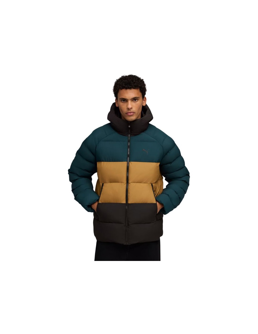 Puma Mono Hooded Men’s Jacket Green, Brown, and Black 688367 75 This Puma men’s jacket will keep you warm on frosty days and enhance your sporty look. Synthetic down with WarmCell technology guarantees reliable protection against the cold and is exceptionally lightweight, allowing you to maintain complete freedom of movement. A water-repellent finish limits moisture absorption. WindCell protects against the wind. Regular fit. Quilted, horizontal panels. Zippered side pockets. Straight, quilted design. Fixed hood. Jacket made from 100% recycled materials. Specifications: Material: 100% polyester. Filling: 100% polyester. Lining: 100% polyester.