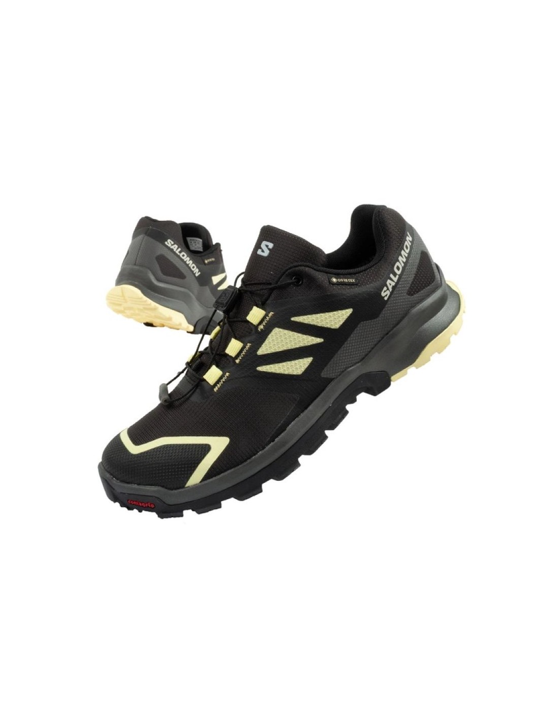 Ιδιότητες: Ανδρικά παπούτσια για τρέξιμο από τη Salomon. Αναπνεύσιμο επάνω μέρος από υφασμάτινα και συνθετικά υλικά υψηλής ποιότητας. Η τεχνολογία GORE-TEX προστατεύει από την υγρασία, ενώ παράλληλα εξασφαλίζει την αναπνοή. Εξωτερική σόλα Contagrip® με επιθετικό πέλμα παρέχει εξαιρετική πρόσφυση σε διάφορες επιφάνειες – από υγρές και λασπωμένες έως στεγνές και βραχώδεις. Το κλασικό σύστημα κορδονιών έχει αντικατασταθεί από το σύστημα Quicklace, το οποίο επιτρέπει τη γρήγορη και ακριβή προσαρμογή του παπουτσιού στο πόδι, εξασφαλίζοντας άνεση και εργονομική στήριξη. Η κατασκευή Sensifit™ αγκαλιάζει με ακρίβεια το πόδι, εξασφαλίζοντας σταθερότητα και σίγουρο βηματισμό σε κάθε στάδιο του τρεξίματος. Οι πάτοι Ortholite προσαρμόζονται τέλεια στο σχήμα των ποδιών, εξασφαλίζοντας πλήρη άνεση και απορρόφηση. Απομακρύνουν την υπερβολική θερμότητα και υγρασία προς τα έξω, παρέχουν αναπνευσιμότητα και έχουν αντιβακτηριακές και αντιμυκητιακές ιδιότητες.