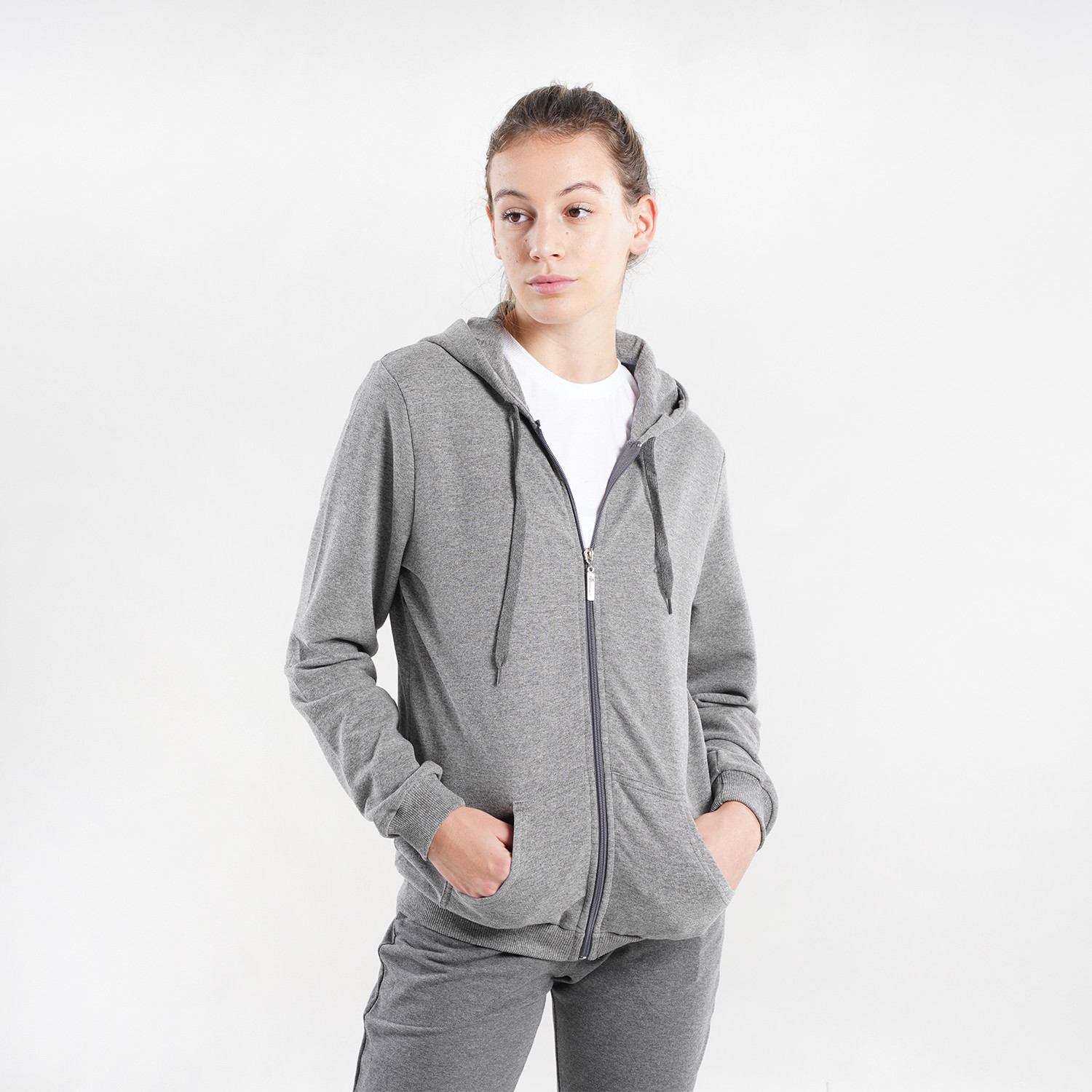 Για το γυμναστήριο ή εκείνες τις ημέρες που θέλεις απόλυτη άνεση και ένα comfy look, αυτή η ζακέτα είναι ιδανική! Χαρίζει μοναδική άνεση, ζεστασιά και σου επιτρέπει να έχεις απόλυτη ελευθερία κυήσεων. Διαθέτει κουκούλα για να σε προστατεύει από το κρύο αλλά και τσέπες για τα χέρια σου. Πληροφορίες • Σύνθεση: 80% βαμβάκι / 20% πολυεστέρας • Κανονική εφαρμογή • Κλείσιμο με φερμουάρ • Ριμπ μανσέτες • Κουκούλα στο πίσω μέρος με ρυθμιζόμενο κορδόνι Extra Λεπτομέρειες • Το μοντέλο είναι 175 cm και φοράει XS • Χρώμα: Γκρι