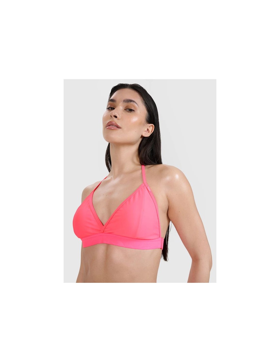 Women’s bikini top – classic design with triangle cups This women’s bikini top combines timeless style and comfort, perfect for the beach, pool , or summer activities. It provides comfort, freedom of movement , and a perfect fit for summer relaxation. Made of high-quality synthetic material with 15% elastane , this bikini top is stretchy , durable, and easy to care for. Quick-drying fibers effectively wick moisture away from the body, ensuring comfort even after getting out of the water. This model features a classic design with triangular cups and a V-neckline that accentuates the bust and shoulders. Elastic underbust band provides support, while removable pads allow for customizable shape and support. A single, integrated strap with a tie at the neck allows for an adjustable fit and adds style. Product features – women’s bikini top : Sizes XS–XL – to fit a variety of body types 15% elastane – elastic material ensuring comfort of wearing Classic design with triangle cups – feminine, timeless cut V-neck neckline – subtle emphasis on the neckline Elastic band under the bust – stability and support Cups with removable pads – individual fit Strap with neck tie – adjustable and a stylish accent Quick-drying fibers – comfort after bathing and quick drying Solid color – matches a variety of bikini bottoms