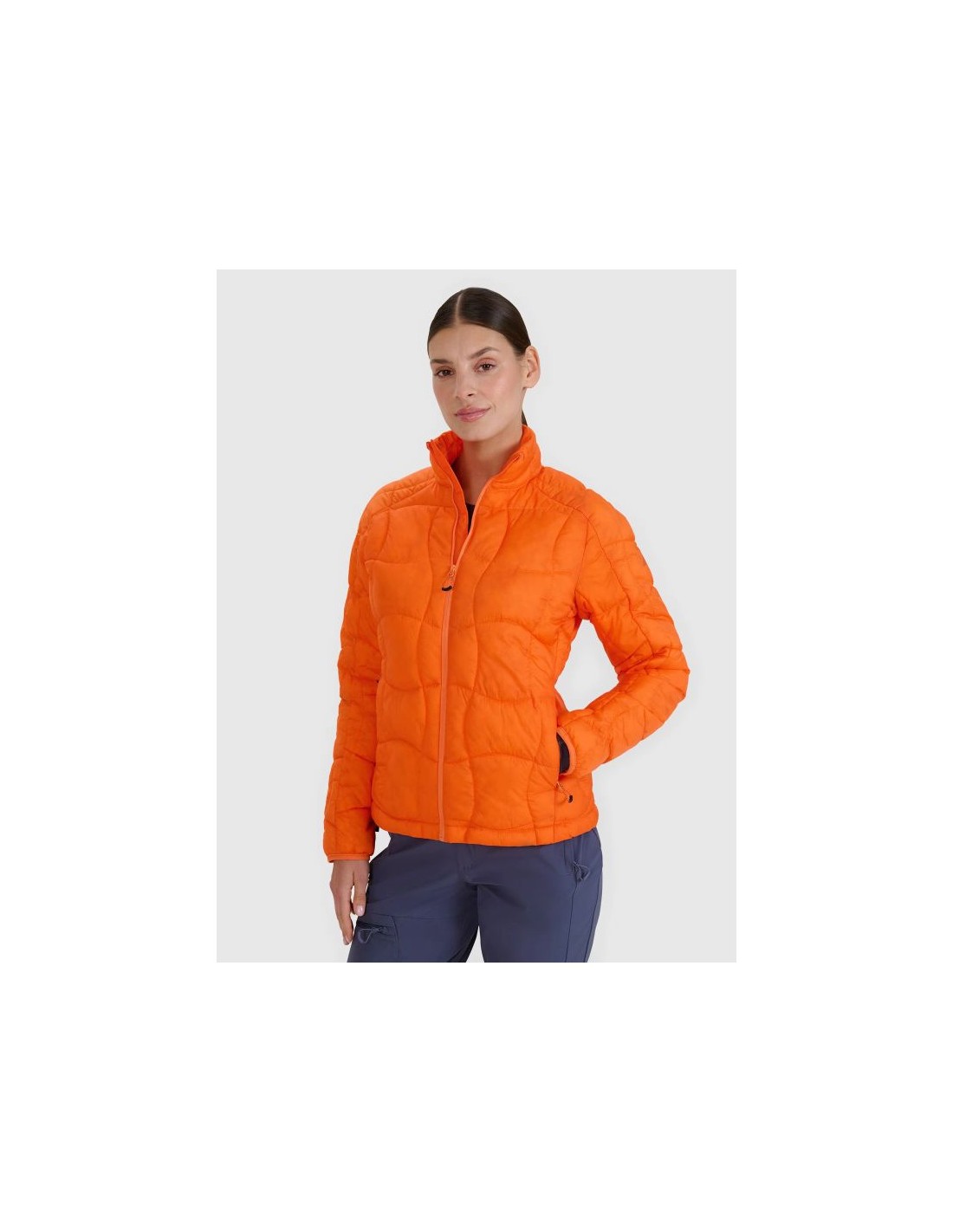 Women’s Synthetic Filled Down Jacket – Lightweight Protection Against the Cold This women’s synthetic-filled down jacket is a perfect choice for cooler days during the transitional period. Its lightweight construction and innovative materials ensure thermal comfort without adding bulk. Key features: Lightweight construction : The jacket is easy to pack, making it practical for everyday use and travel. Gentle stand-up collar : Protects your neck from chilly air, providing extra comfort in colder conditions. Elastic cuffs : Finished with elastic, they effectively retain heat, preventing cold air from entering. Side pockets : Two open pockets on the sides of the jacket where you can store small items or warm your hands. Elasticated hem : The bottom of the jacket has an elasticated hem that improves its fit and prevents heat loss. Hydrophobic impregnation : The outer material of the jacket has an impregnation that limits the absorption of moisture, thanks to which the jacket protects against rain and moisture. Soft synthetic down : The synthetic down filling provides excellent thermal insulation, maintaining optimal body temperature. Main zipper with flap : The jacket’s main zipper is equipped with an inner flap that provides additional wind protection. A down jacket with synthetic fill is a great choice for cold days, providing both thermal comfort and functionality in changing weather conditions.