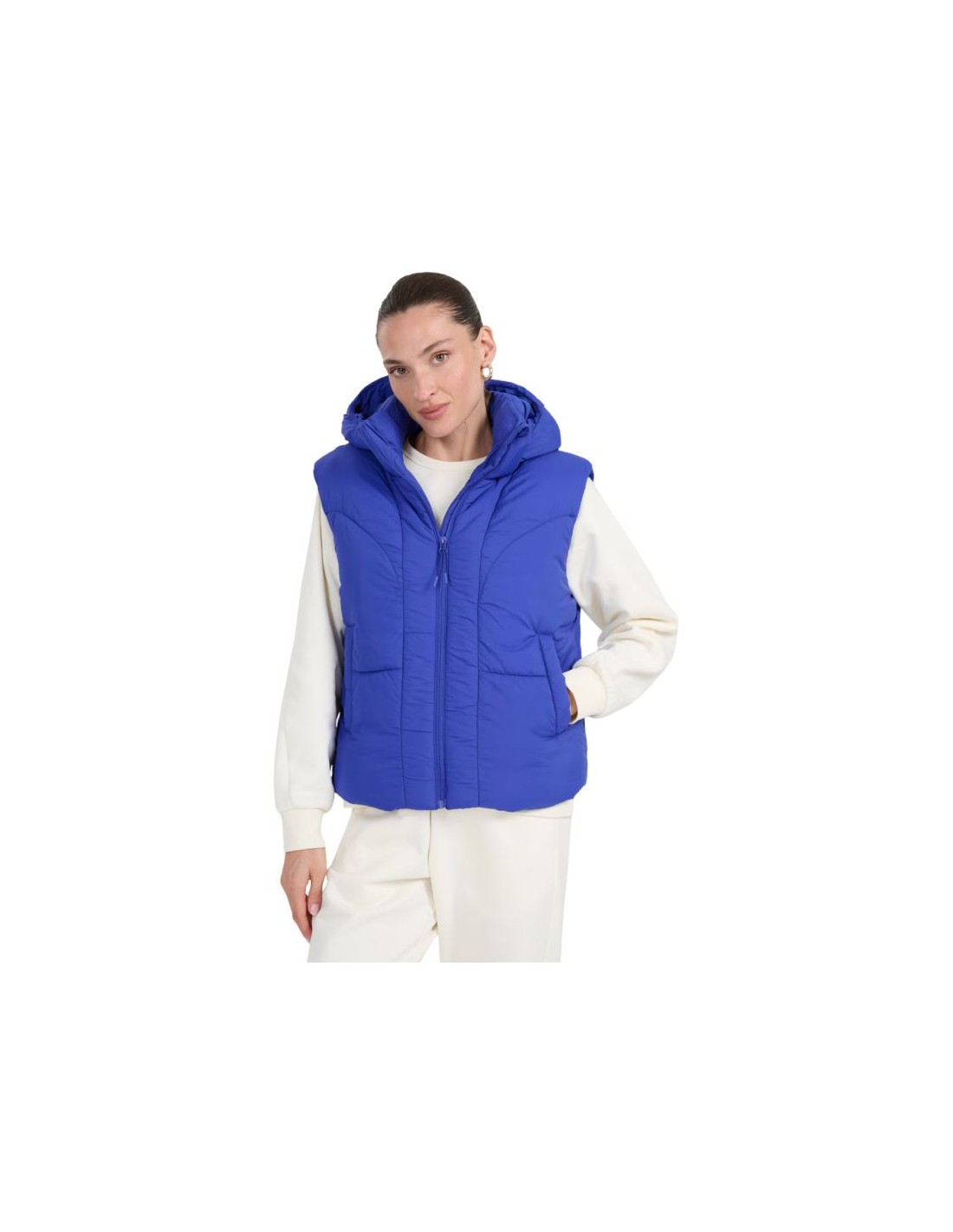 Women’s vest 4F F299 cobalt 4FWAW25TVJAF299 36S The 4F women’s vest is a practical part of the transitional period wardrobe that offers extraordinary comfort. Technical data: Main material: 100% polyester Lining: 100% polyester Filling: 100% polyester (synthetic down) Hydrophobic outer coating – protects the material against moisture absorption and light rain Light polyester insulation – provides warmth without feeling heavy, easy to care for Quilted panels – add character and evenly distribute the insulation Detachable hood with regulation – can be adjusted and worn in various conditions Stand-up collar – additional protection against cold and wind One-way zipper at the front – easy and quick to put on and take off the vest 2 side pockets without fastening – quick access to small items and a comfortable place for your hands Adjustable bottom with a drawstring – a tunnel drawstring with stoppers allows you to adjust the circumference Regular fit – adapts to the body without feeling tight
